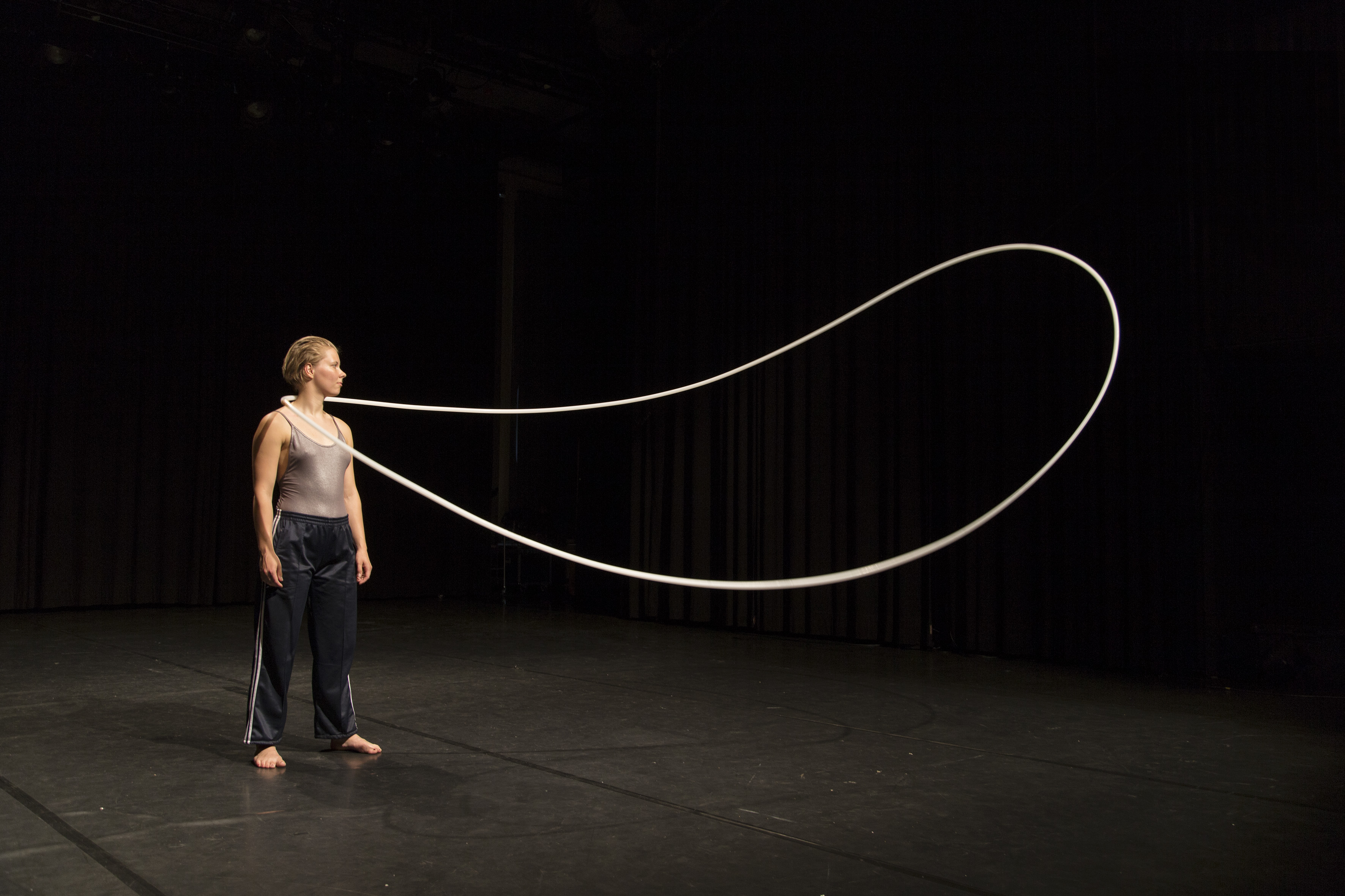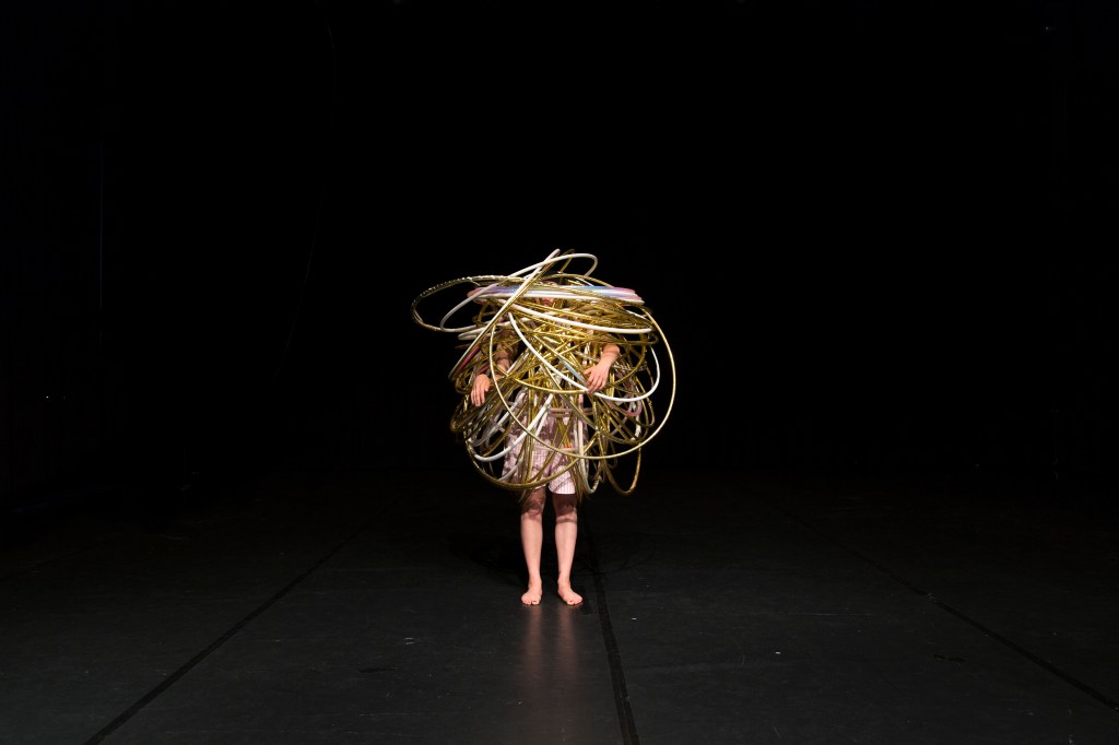 < 3 is a sparkly and effervescent full-length contemporary circus performance combining hoop manipulation, puppeteering and sound art.