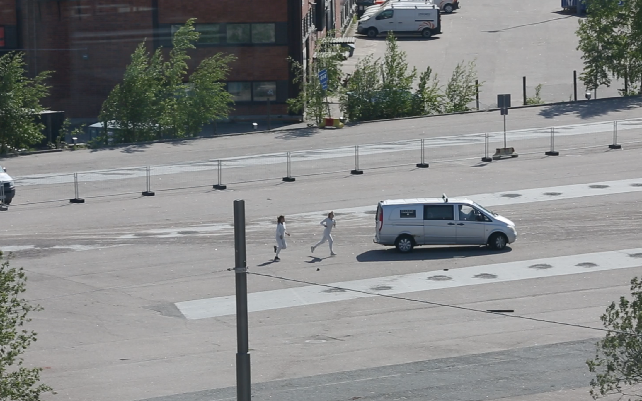 Performance on a roof top of a shopping mall Redi, Helsinki. 8.5.2019.