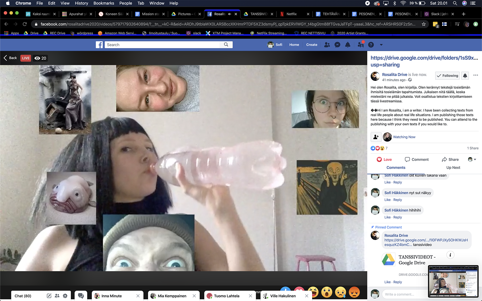 A participatory Live-stream performance in Facebook-live (Playdate Remote, The Center for Everything FIN)