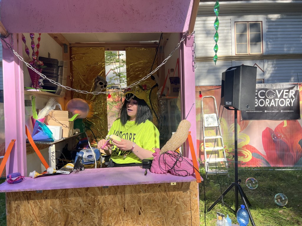 The snack bar is a multi-art performance and installation that mimics the style of a traditional vertical kiosk. Performance artist Miradonna Sirkka leads the audience to the Snägäri, where they will be handed with Snägäri’s notorious menu. The menu includes a variety of questions that will stop you in your thoughts for a moment. And theeeen you eneter to the queue!!!! Based on your answers, visual artist Sofi Häkkinen will sculpt a kitschy hamburger sculpture to take home – in a take-away box, of course