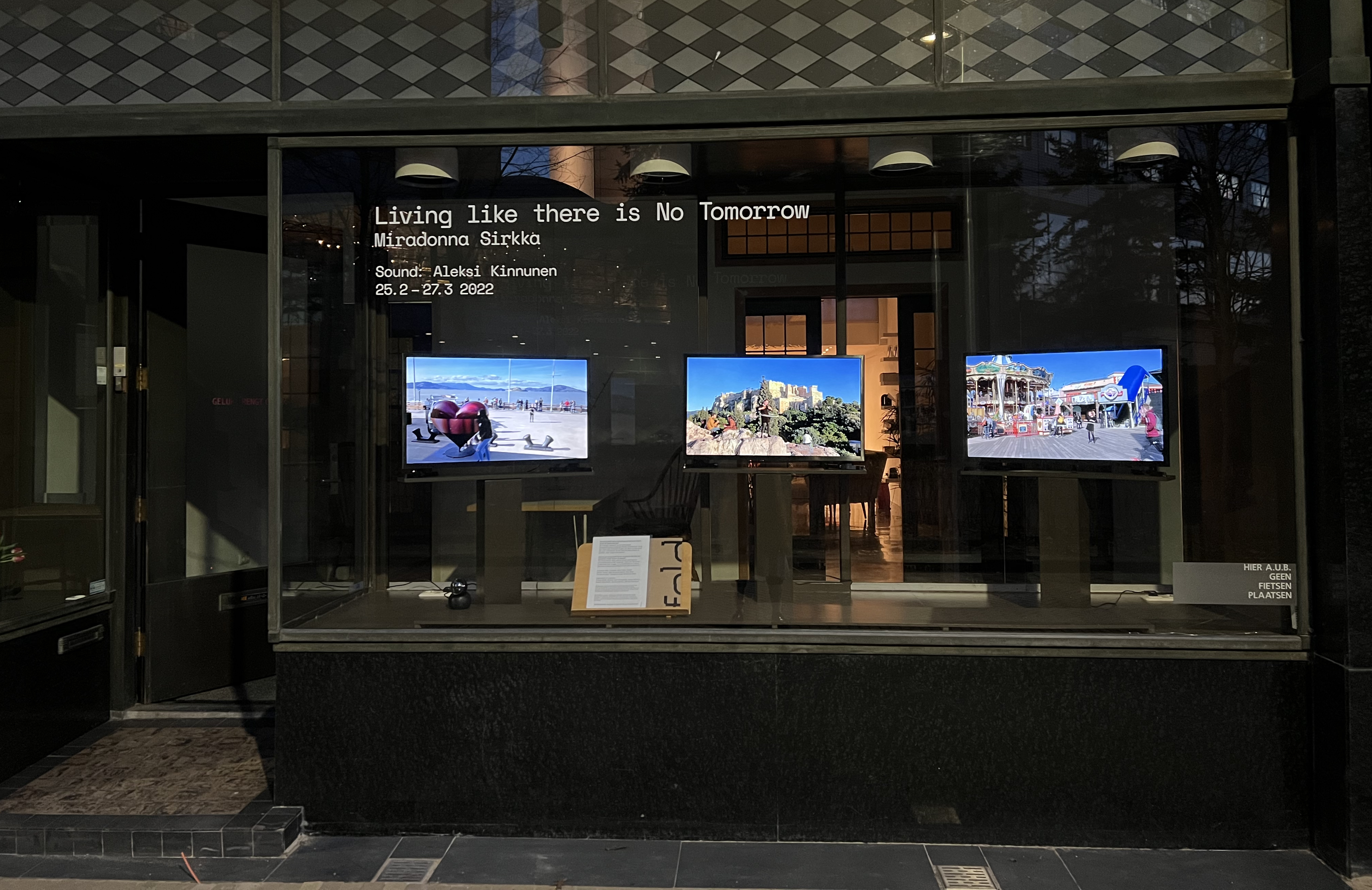 Additionally, my video Living like there is No Tomorrow (3 channel video & audio, 2019-2020) was exhibited SEA Foundation’s vitrine gallery 25.2.–27.3.2022. (pictured above.
